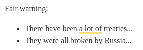 notnever respected by Russia. - Russia likes to play the public to motivate hostilities against foreign nations. (quite like post-war US intervening in other ‘communist’ countries. And now again under Trump, threatening to invade Canada, Mexico, Greenland, and most recently Venezuela.