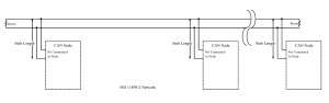 Som framgår ur bilden, ska anslutningar till CAN-nätverket helst vara korta. I bilden framgår även de två 120 ohm motstånden i nätverket – fast de kan även funnas i två av modulerna.
